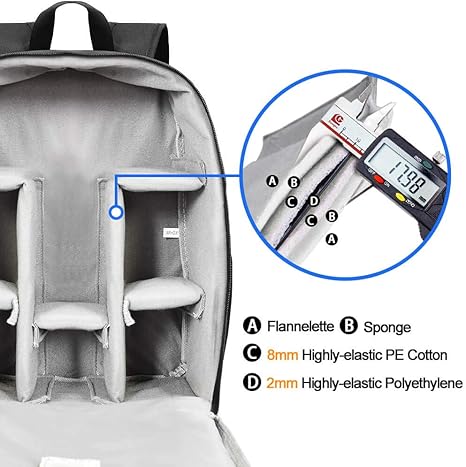 - 【Multi-Functions】⑥CADeN alloy zipper won’t rusty within 3 years, and won’t break within 5 years; ⑦One side for iPad storage with sticker fixed inside the camera bag; ⑧Inner bag paddings are made of 7-layer PE foam and PP board, protect your camera from shocking, very durable; ⑨Shoulder belts and handle that connected with camera rusksack have taken bar-tack reinforcement technology which load-bearing up to 50kg(110.2lb). Best care for your cameras, lens, flashes, tripod, and other accessories.