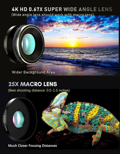 Introducing the Updated COSULAN Phone Camera Lens Kit 4-in-1, your ticket to professional-grade photography right from your smartphone! This all-inclusive kit comes equipped with four high-quality lenses to cater to all your photography needs. Capture breathtaking close-up details with the 25X Macro Lens, expand your frame with the 4K 0.67X Wide Angle Lens, get creative…